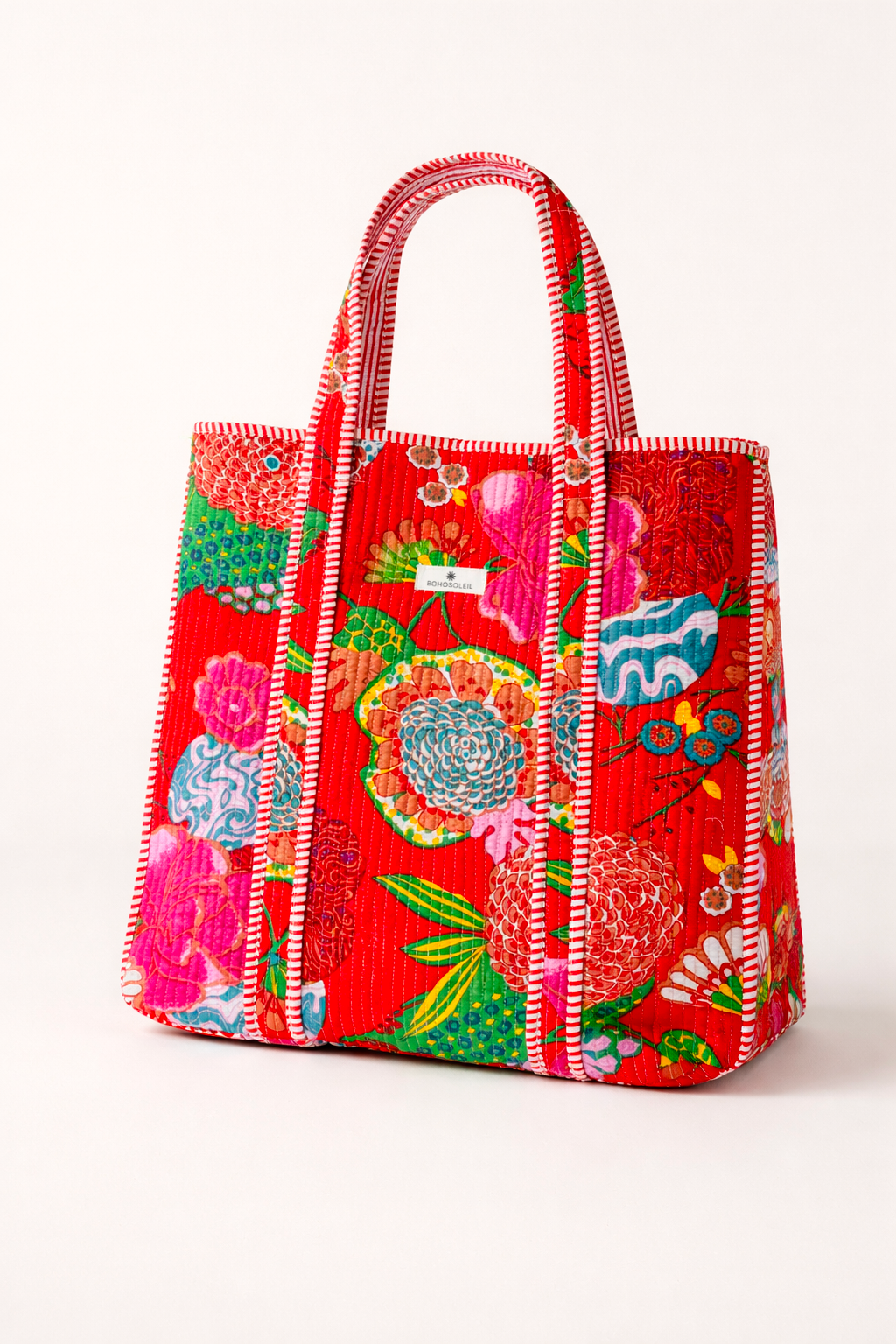 The Hanoi quilted cotton tote bag embodies the perfect balance between refinement and practicality. Entirely handmade, it is crafted from Indian block print fabric, printed using an ancient artisanal technique.