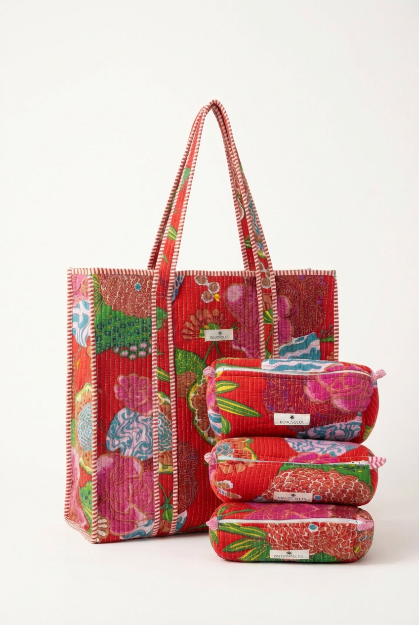 The Block Print Weekend Set also makes for an original gift idea, perfect for giving someone an elegant set thatâs useful for everyday use. This tote bag and pouch set is an ideal gift for a trip, a birthday, Motherâs Day, or simply as a stylish and practical treat for yourself or someone else. In short, itâs a duo that combines style, practicality and tradition.