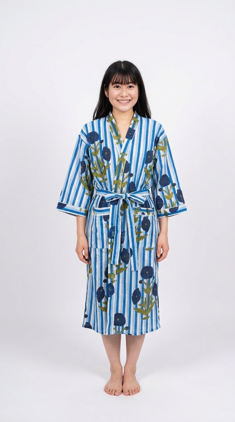 Comfortable, soft, and breathable, this bathrobe is perfect for relaxing moments, whether you’re stepping out of the bath or enjoying a summer morning.
