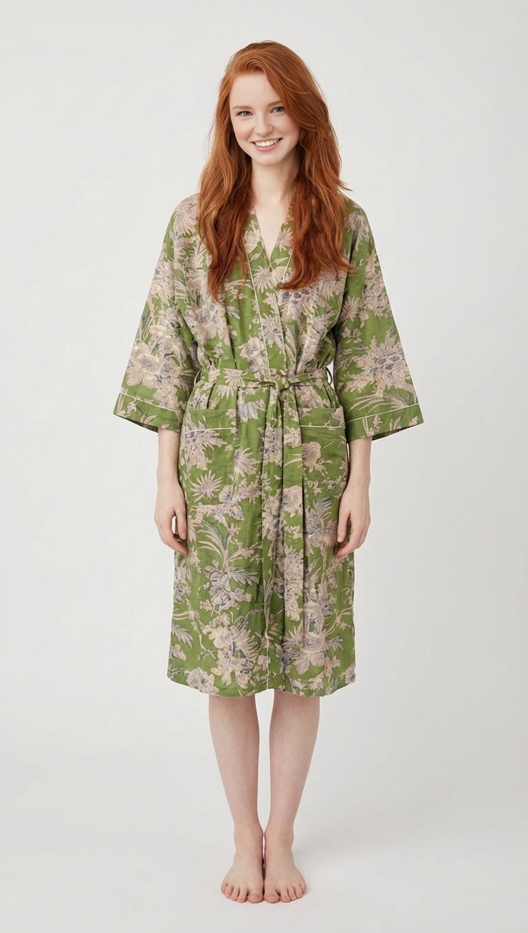 Comfortable, soft, and breathable, this bathrobe is perfect for relaxing moments, whether you’re stepping out of the bath or enjoying a summer morning.