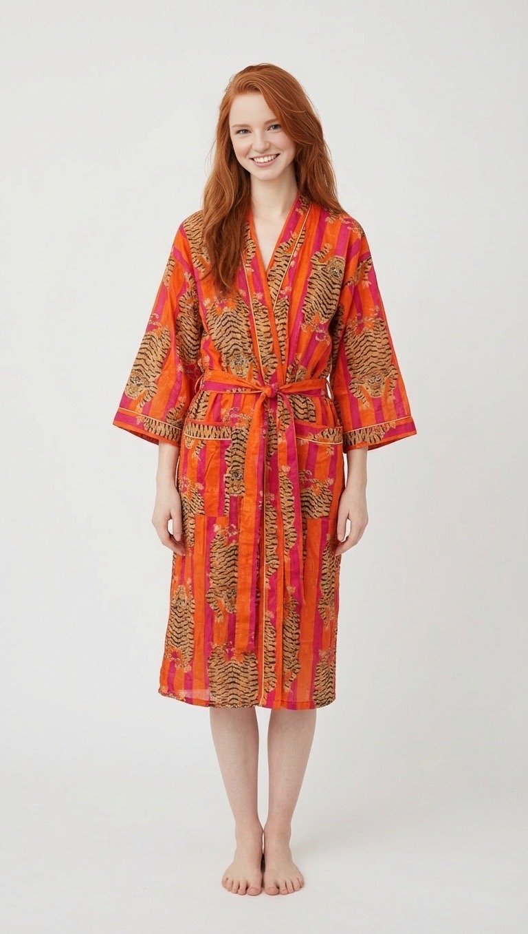 Comfortable, soft, and breathable, this bathrobe is perfect for relaxing moments, whether you’re stepping out of the bath or enjoying a summer morning.