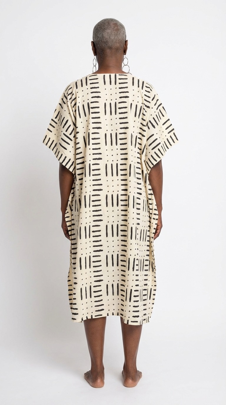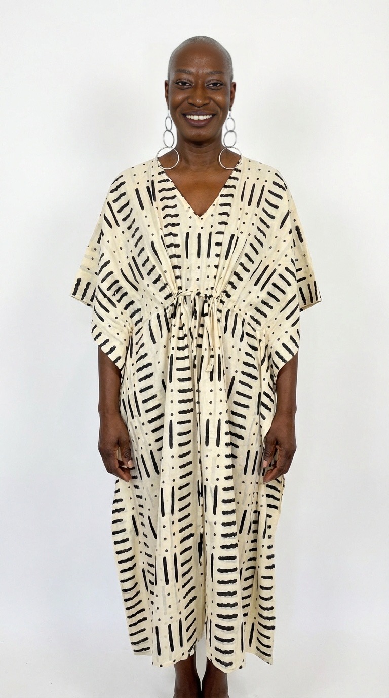 - un caftan en coton block print, fluide et élégant