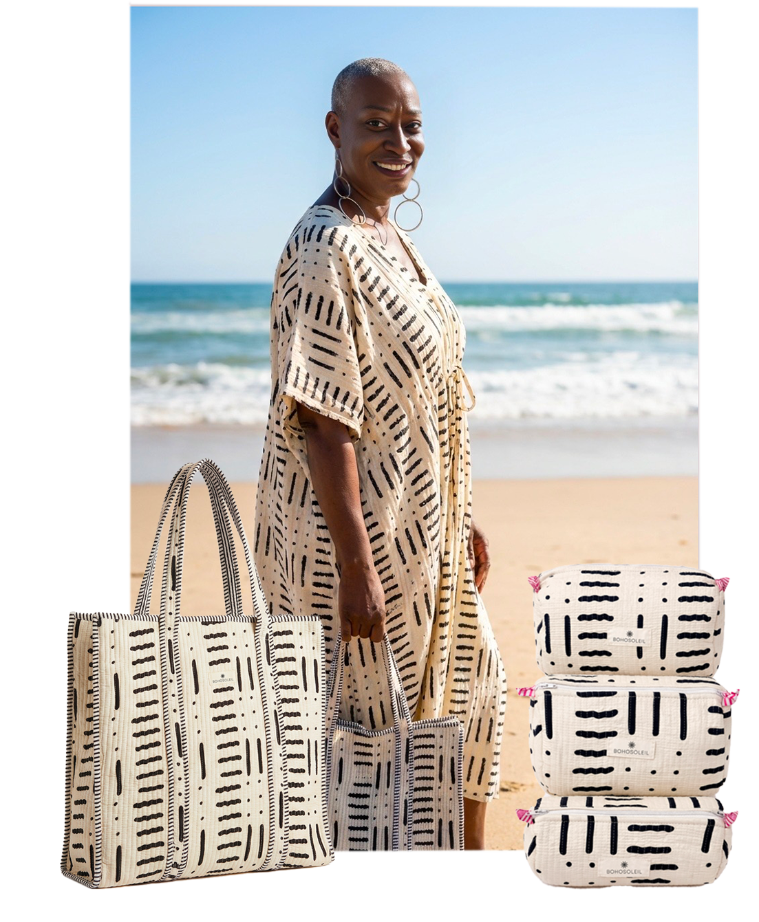 Kit Voyage Bahia – Cabas, caftan et trousses block print