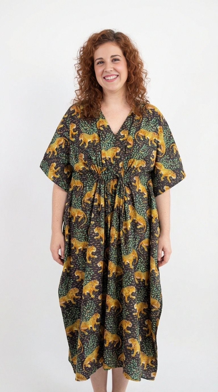 Confortable, respirant et raffiné, le caftan Miami offre une coupe ample et féminine, parfaite en robe d’été, tenue de plage ou tenue d’intérieur.