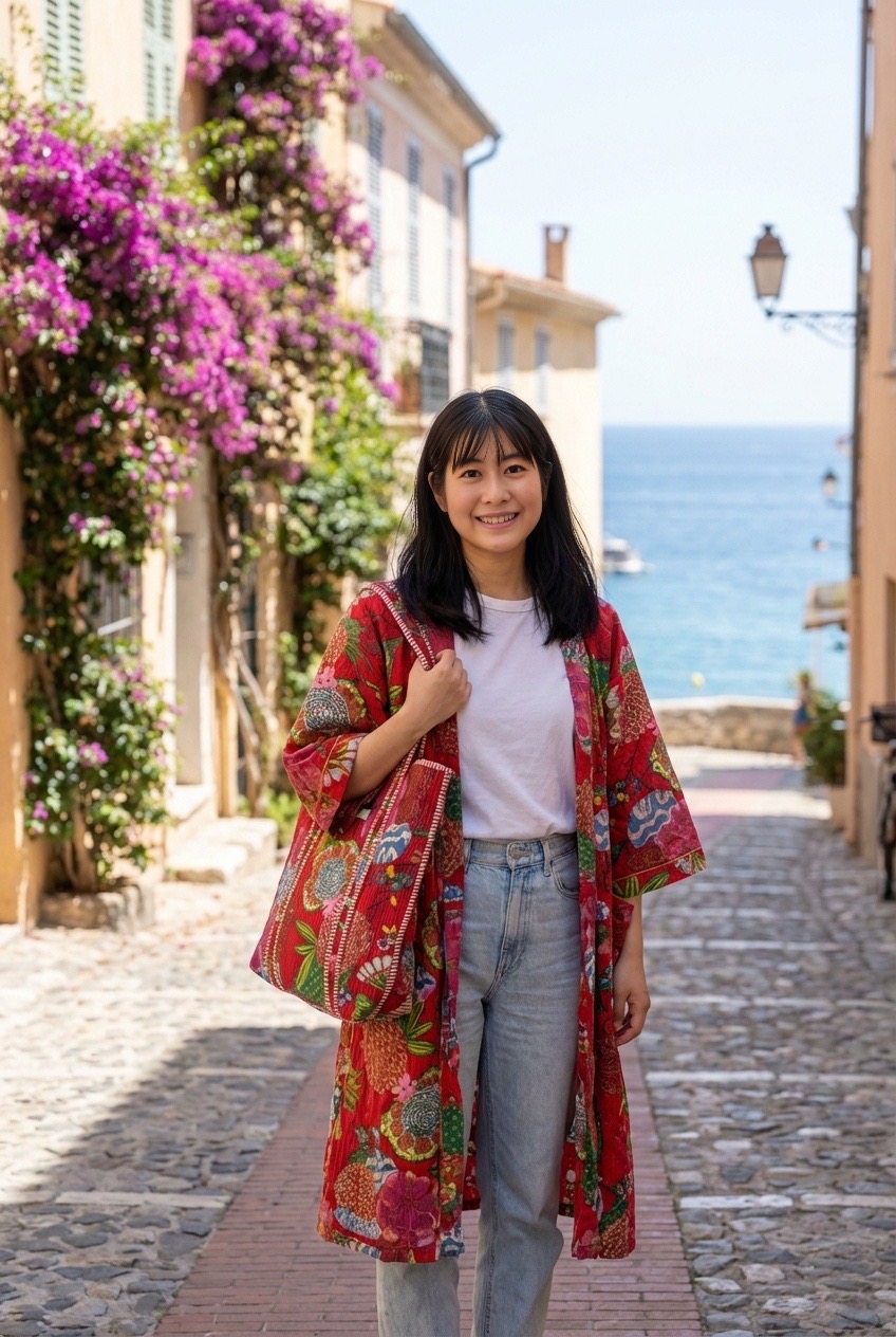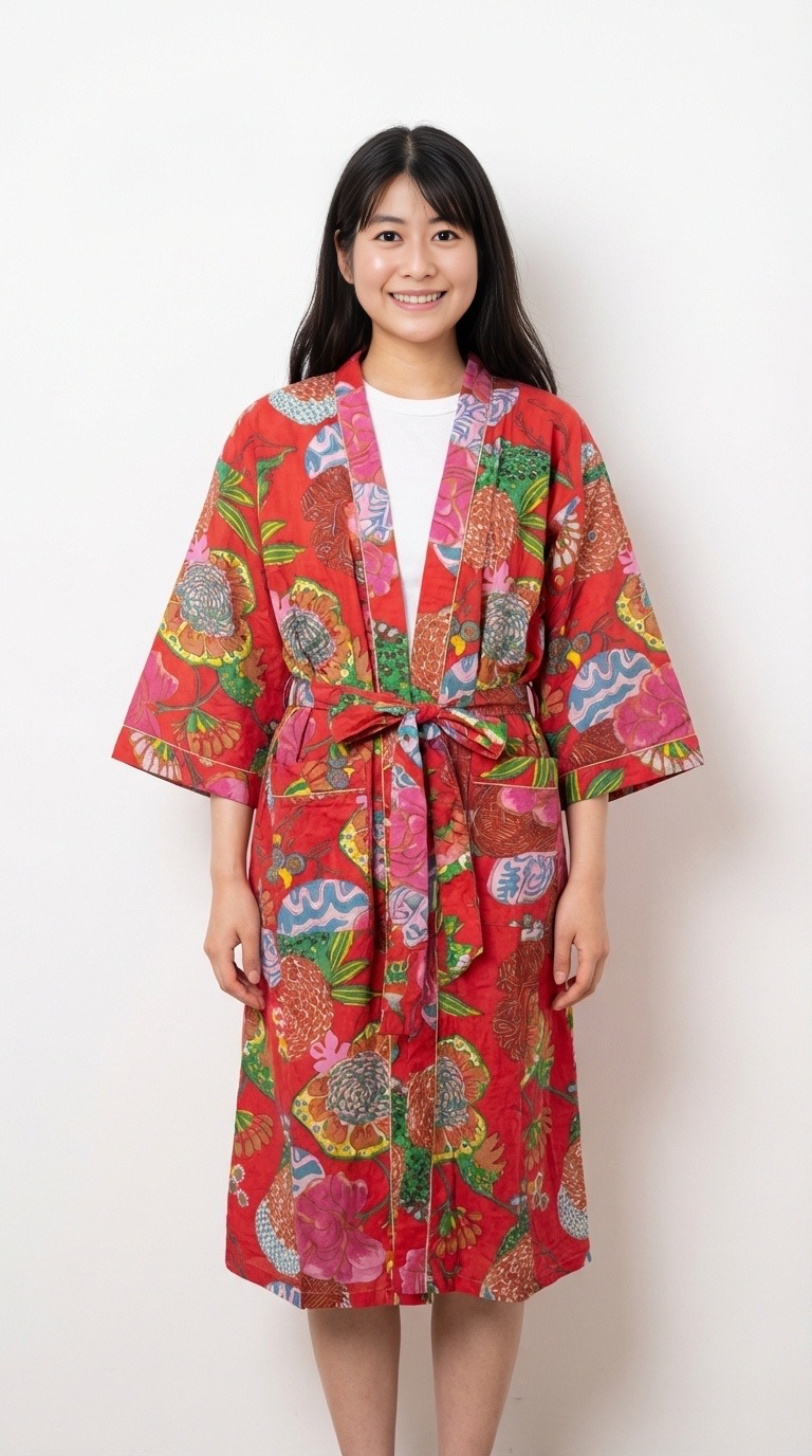 Grâce à son coton respirant et à sa coupe fluide, ce peignoir léger en coton fait main accompagne parfaitement les moments de détente. Il se porte en sortie de bain, comme tenue d’intérieur élégante, en robe légère à la maison, lors des matins d’été ou des soirées de voyage